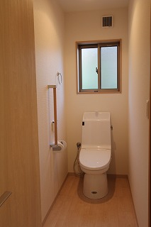 リフォーム後![]() 白を基調としたシンプルなトイレ空間。手摺りも設け安全も確保しました。 |