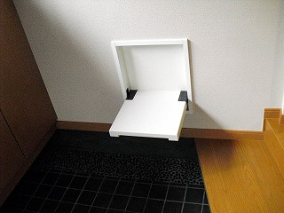 リフォーム後![]() 光が入る明るくスッキリした玄関。手摺りをつけ、上り下りの安全も確保しました。 ![]() 折りたたみベンチを設置しました。腰をかけて、靴をはくことができます。使わない時はたためるので、玄関はすっきりした印象です。 |