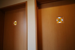リフォーム後![]() 洋間~寝室 ![]() ステンドグラスをあしらったオリジナル建具。 ![]() 勾配天井でお部屋を広く演出 |
