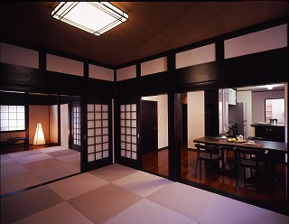 リフォーム後![]() 本家であるため、親戚が集う際には2つの和室をつなげて利用できるように昔の趣を残したままとした。 |