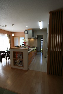 - LDK横に「男のキッチン」兼サンルームと勝手口を設けました。ゴミの置き場所も確保でき、お子様を見ながらの家事がスムーズにできるようになりました。
