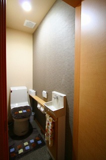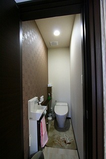 リフォーム後![]() トイレ空間はそれぞれアクセントクロスを張り、違った雰囲気に仕上げました。 ![]() |