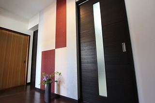リフォーム後![]() 玄関入って正面には二色の越前和紙を貼り分けて空間にアクセントを...。 |