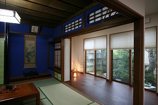 - 和室の形をそのままに、金澤の伝統的な色彩である群青色を壁に使用し、伝統様式を現代生活によみがえらせました。