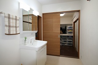 リフォーム後![]() シンプルでゆったりとした洗面スペース。ファミリークローゼットに隣接し、直接行き来ができます。 |