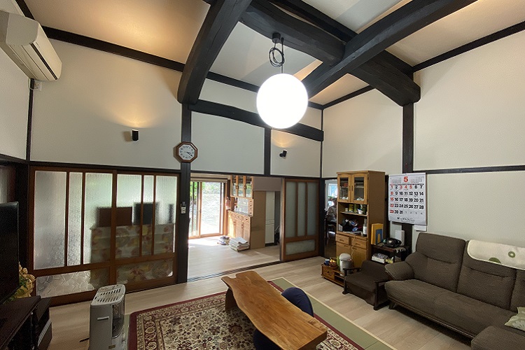 リフォーム後![]() 梁を出すことで古民家の趣がより感じられるように |