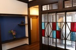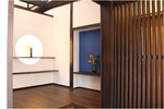 リフォーム後![]() 玄関を入ると目に飛び込んでくる優しい月明かり 群青色の壁が古民家に調和します