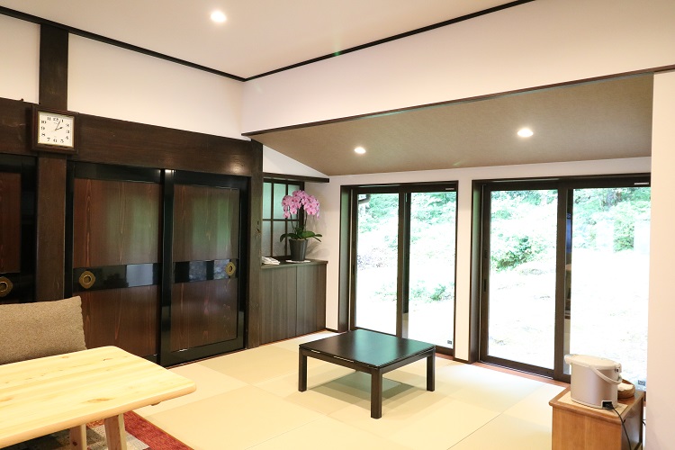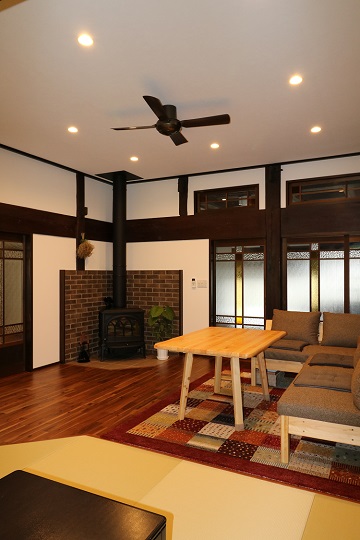 暗くて寒い居間が明るく、暖かくなり、古民家の趣を残しながらも快適な空間になりました。工事が進むにつれて、母は「楽しみやわ」と目に見えてイキイキと元気になっていきました。今では親戚だけでなく、お友達もよく遊びにくるようになり母も明るくなりました。「まだまだ元気で頑張らなくっちゃ」と母も意気込んでいます。