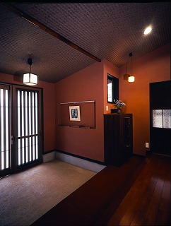 リフォーム後![]() 玄関から中次の間をみる篆刻が映えるよう中国式の門構えをイメージしプラン。 |