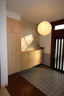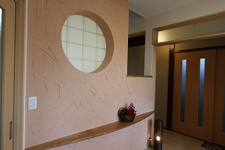 リフォーム後![]() 明るい玄関にはまんまる照明がポイントに...。家族全員分の玄関収納も設けました。 ![]() 玄関正面には、あら目に塗った珪藻土と丸窓、飾り棚でおもてなしのアクセント。 |