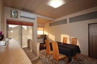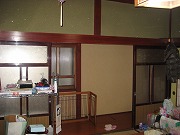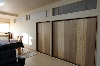 リフォーム後![]() キッチン前のダイニング空間。 ![]() 欄間にはアクリル板を用いて光が通るようにしました。オリジナル建具で空間に調和するやさしいアクセント。 |