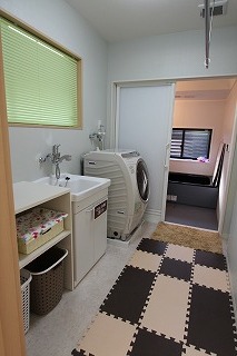 - 洗面・サンルームは既存の勝手口を再利用しました。車を降りて屋根下を通って室内に入ることができます。