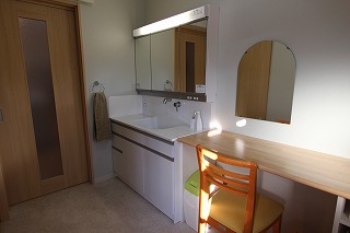 リフォーム後![]() 洗面化粧台横にはドレッサー兼家事カウンターを設けました。 |