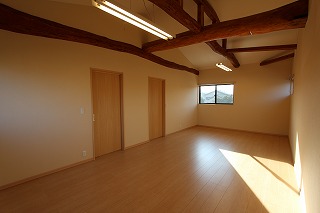 リフォーム後![]() 梁がポイントとなった子供室。将来的に2部屋に分けることもできる可変性を考慮した空間です。 |