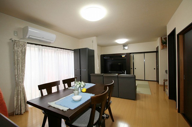 - 玄関横でピアノに占領されていた4.5帖の和室は台所を移動し、LDKにすることで奥の続き間の和室と繋げて広く使えます。