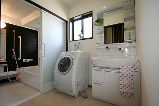 リフォーム後![]() 浴室、洗面脱衣室共にゆったりと使いやすく配置しました。 |