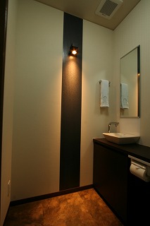 - 鏡を大きくすることで空間に広がりをもたせました。