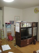 リフォーム後![]() テレビの位置を180度変え、採光が取れる位置で寛げるようにしました。 |