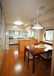 リフォーム後![]() キッチンは今までの配置のまま窓も利用し、機能性をアップして入れ替えしました。収納も側面にたっぷりとりました。 |