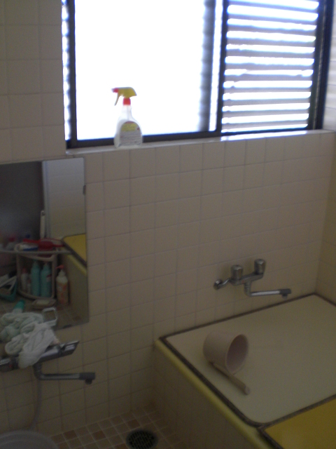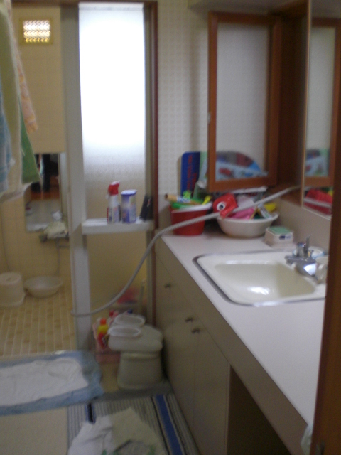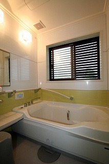 リフォーム後![]() 大おばあちゃんもいるので、バリアフリーに配慮し、手摺がぐるりと取付されたユニットバスに。浴槽も出這入りしやすい形状になっています。 |