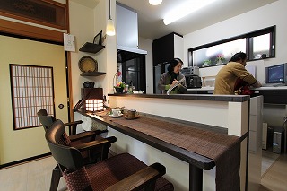 リフォーム後![]() 横並びで食事ができるカウンタータイプにしました。 |