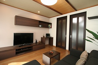 - ご主人は居間でパソコンを、奥様はセカンドリビングで映画鑑賞やお勉強など空いている部屋を有効活用し、お互いに過ごしやすい空間としました。