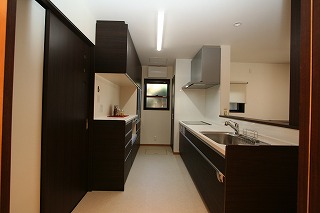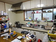 リフォーム後![]() 対面キッチンとしました。奥には食品庫を設け、とても使いやすくなりました。 |