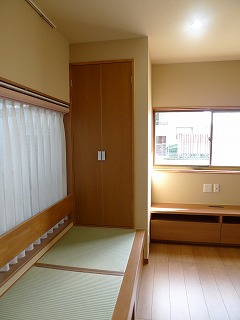 リフォーム後![]() 寝室にもたたみベンチを設けました。収納も増え、お部屋もすっきり保つことができます。 |
