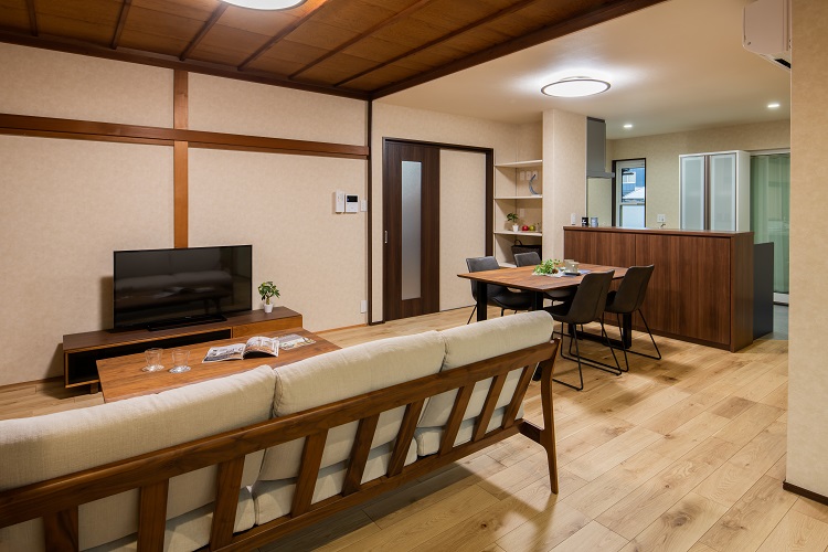 リフォーム後リビングをを中心に、二人のお母さまが温度差なく