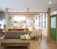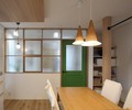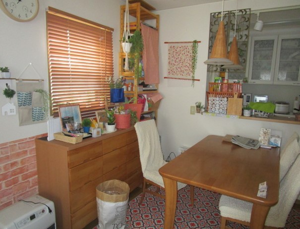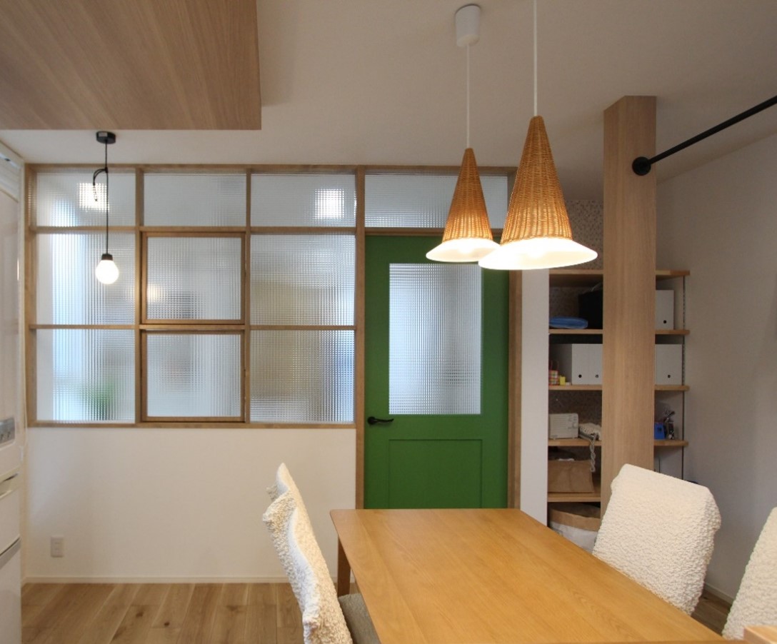 リフォーム後![]() ダイニングとサンルームの間の造作ドアと室内窓でより明るく 回転窓を開ければリビングの暖気で洗濯物の乾燥が可能 |