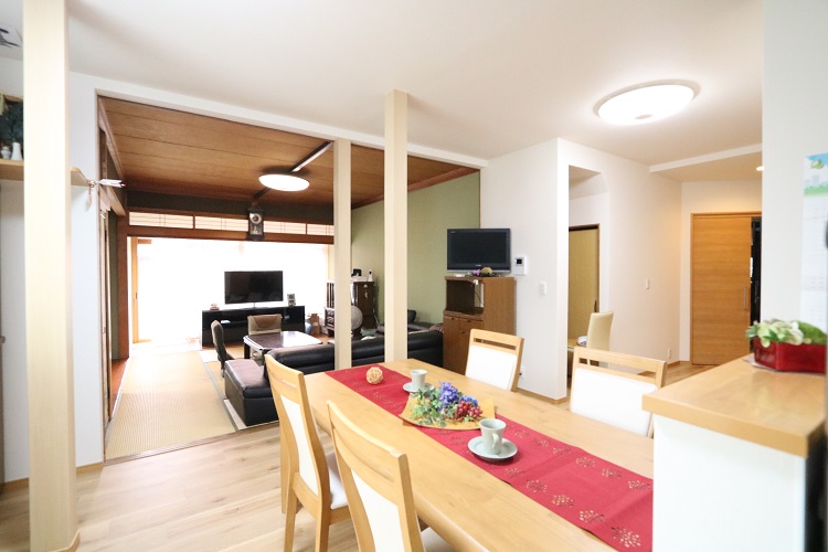 - DKと居間とで分かれていた部屋を一体的なLDKにしたことで、普段のご家族の様子や、お孫さんが遊びに来た時にも様子をうかがいながら過ごせるようになりました。