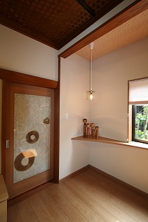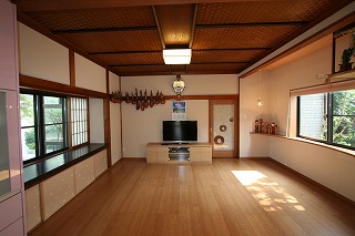 リフォーム後![]() 既存の天井や真壁の柱はそのまま残し、懐かしさの残る落ち着いた和の空間となりました。 ![]() リビング一角には飾棚を設け、お気に入りの小物を飾っていただけます。 |