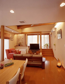 - 開放的で明るいLDKにするため、離れと居間をつなげ南からの光を入れました。