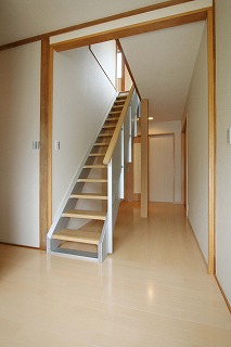 リフォーム後![]() 廊下が暗くならないように階段はストリップ階段にしました。 |