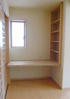 - 構造上必要な壁を活かしたPCコーナーなど収納の工夫をしました。