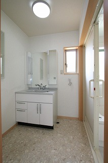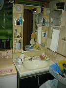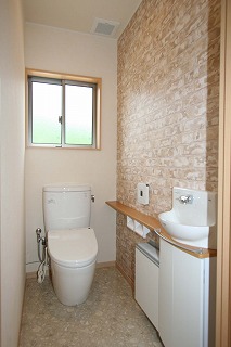 リフォーム後![]() 手洗い面の壁はアクセントクロスでシンプルな中におしゃれなイメージ。 |