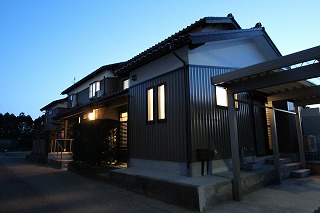 リフォーム後![]() 玄関位置を家に中心に変え、一部減築をし、3台分の駐車スペースを確保することができました。カーポート横に勝手口を設け、買い物帰りもらくらくです。 |