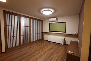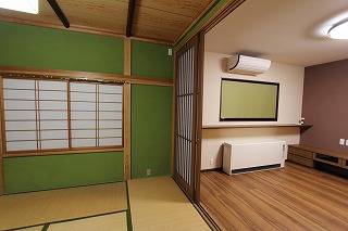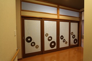 リフォーム後![]() 仏間とリビングは建具をあけると広々空間として使う事ができます。 ![]() 仏間~ホール間は漆と金箔を施した和紙を使用したオリジナル建具。玄関からすぐにお客様をお通しできる既存の和室は建具を一新しました。 |