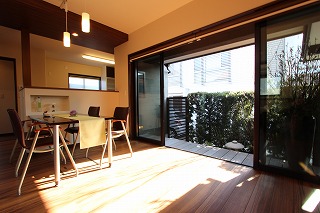 リフォーム後![]() LDKからつながるぬれ縁に座って寛いでいただけます。お庭はお部屋の雰囲気に合わせてコーディネートしてあります。心地良い風を感じ、緑をたのしめる癒しの空間となっています。 |