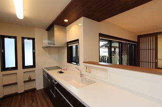 リフォーム後![]() キッチンにいても心地よい風を感じることができます。対面キッチンでコミュニケーションもとれます。 ![]() 水まわりが集まっているので、家事動線もよくなりました。また勝手口を設けたので、お買いものから帰ってすぐキッチンへ行く事ができて便利です。 |