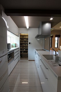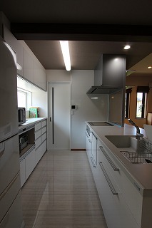 リフォーム後![]() キッチンの上には増築部の梁型。白でまとめられたキッチンスペースのアクセントとなっています。 ![]() キッチン奥にはパントリーを設け、収納を充実させました。 ![]() 対面キッチンとなり、ご家族やお客様とコミュニケーションがとれるようになりました。小上がりは腰掛けるのに合わせた高さとなっています。 |