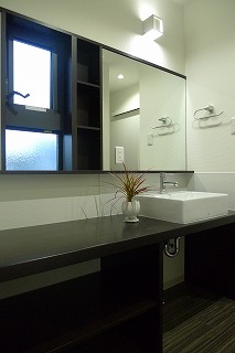 リフォーム後![]() 窓、棚、鏡が一体の洗面カウンターは機能的であり、シンプルモダンな仕上がりです。 |