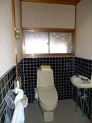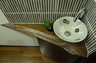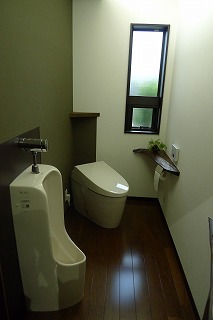 リフォーム後![]() トイレにも季節のお花などを飾っていただけます。 ![]() 小便器まわりにはお手入れ面も考慮し、サニタリーパネルを貼りました。 ![]() 手洗いカウンター背面のタイル貼り、九谷焼の手洗いボウルが空間のポイントとなっています。 |