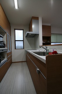 リフォーム後![]() 圧迫感のあったキッチンの壁をなくし、配膳がとても楽になりました。 |