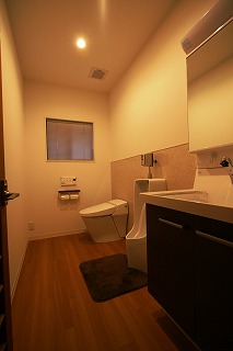 リフォーム後![]() 区切られていた空間をひとつに...。広々と手入れもしやすいトイレ空間になりました。 |