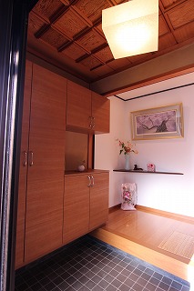 リフォーム後![]() 大容量の玄関収納を設け、すっきりと片付けられるようになりました。 |