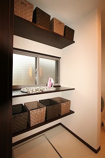 - キッチンと洗面室兼家事室を隣接させ、収納も充実しました。子育て、家事両面から考えた奥様目線の動線が確保されました。