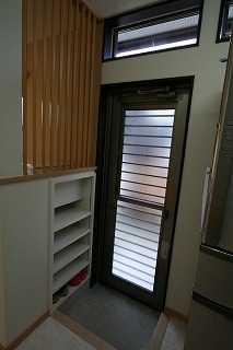 リフォーム後![]() 勝手口には家族全員の靴が収納できる下足棚をつけました |