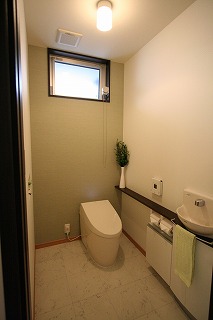 リフォーム後![]() すっきりとしたトイレにはグリーンのポイントクロスとニッチがアクセントになっています。 |