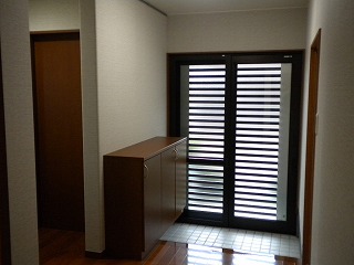 リフォーム後![]() 新たに下駄箱を設けたのでスッキリと片付くようになりました。白いクロスにしたことで明るい印象の玄関になりました。 |
